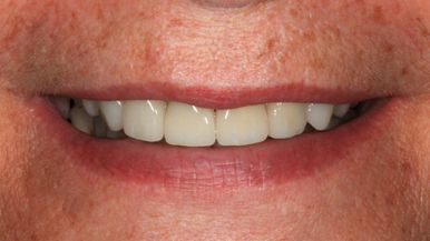 Выполнена пластика десенного края, увеличение вертикального размера окклюзии , замена металлокерамических конструкций на безметалловые коронки, полукоронки, виниры e.Max, проведена установка имплантов и протезирование с опорой на импланты